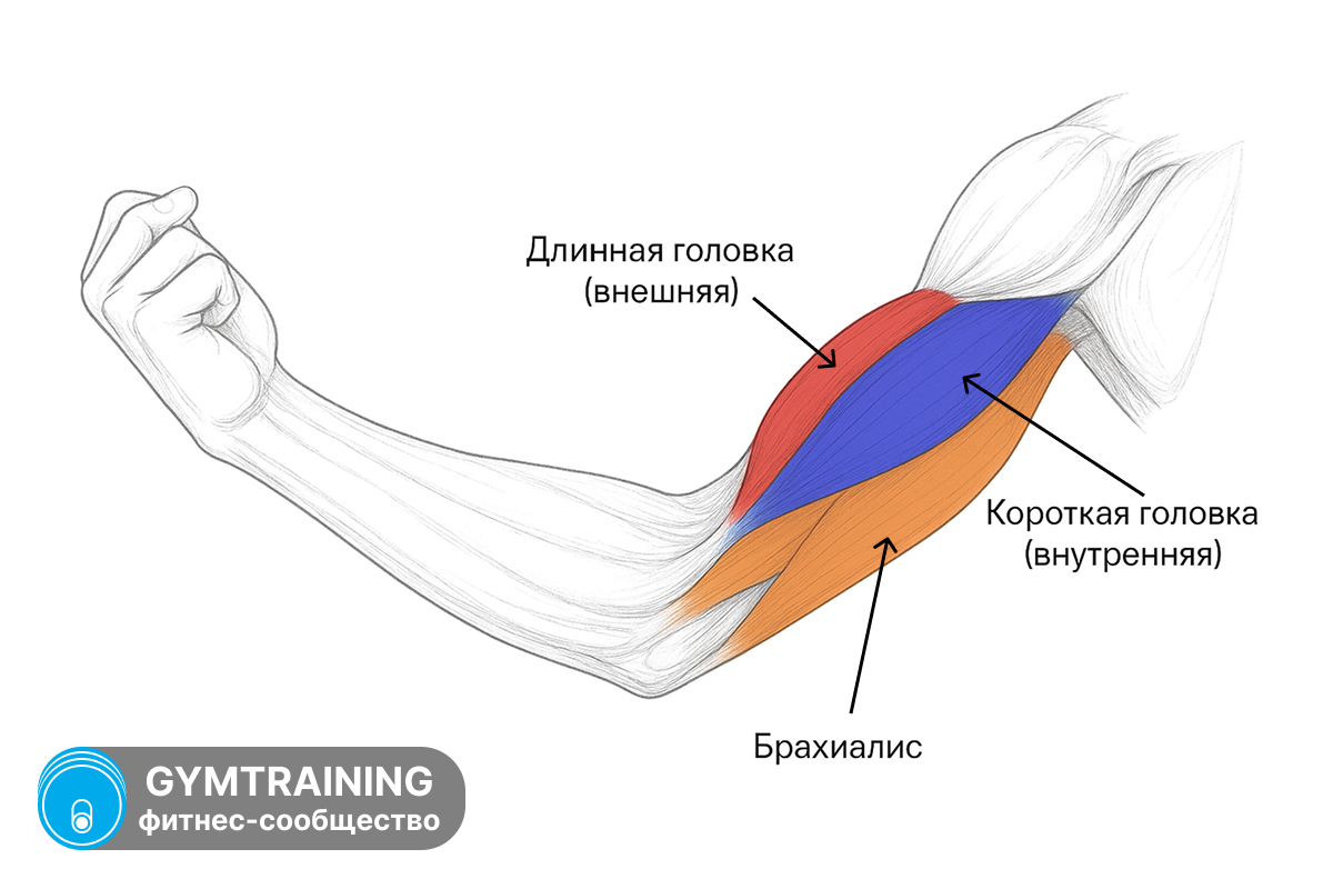 Кроме того, плечевую мышцу (брахиалис) часто считают третьим участником, влияющим на толщину руки. Давайте посмотрим, как они взаимодействуют.