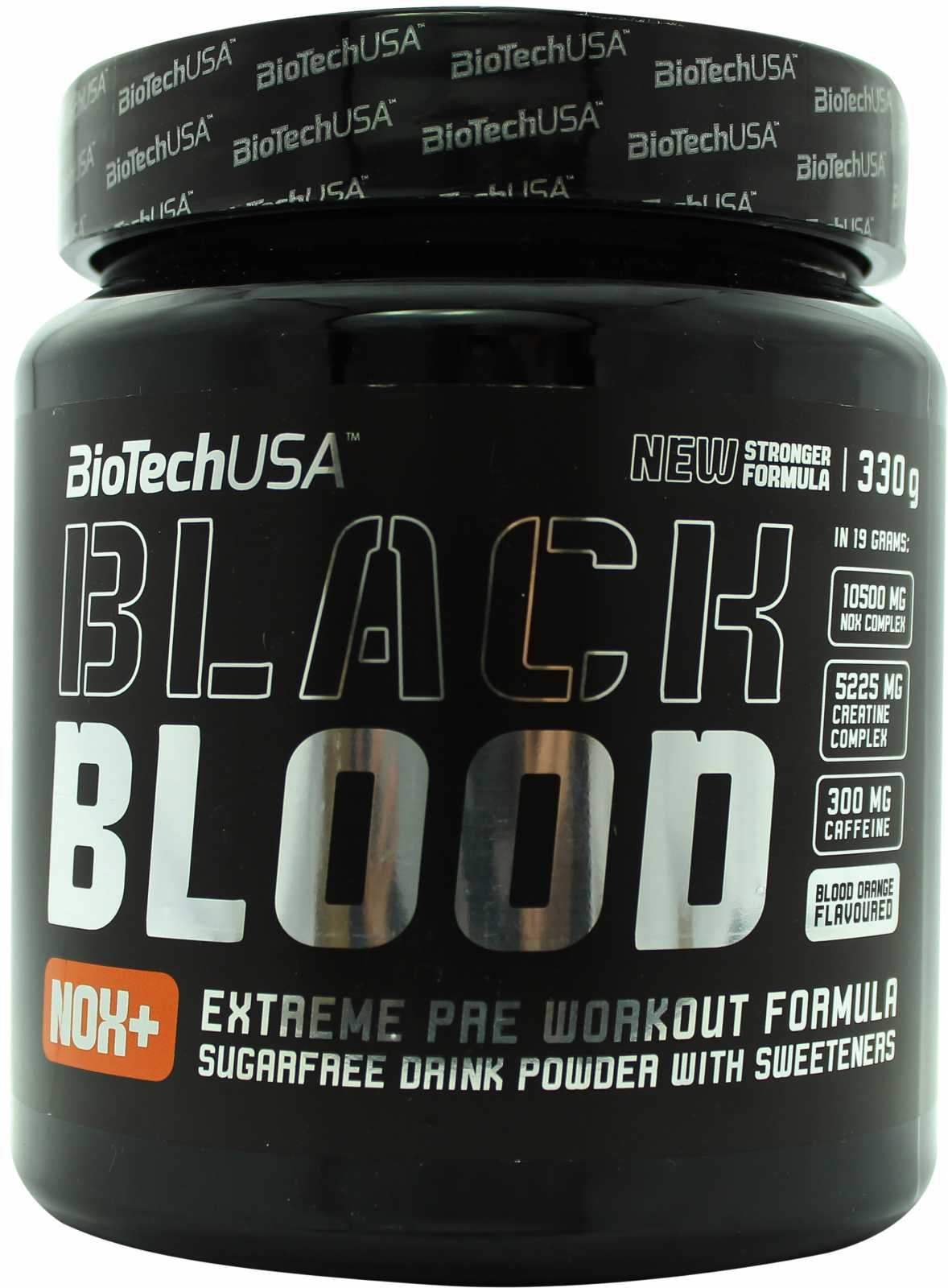 330 g Black Blood NOX+ contains 17.37 Servings. One serving 19 g