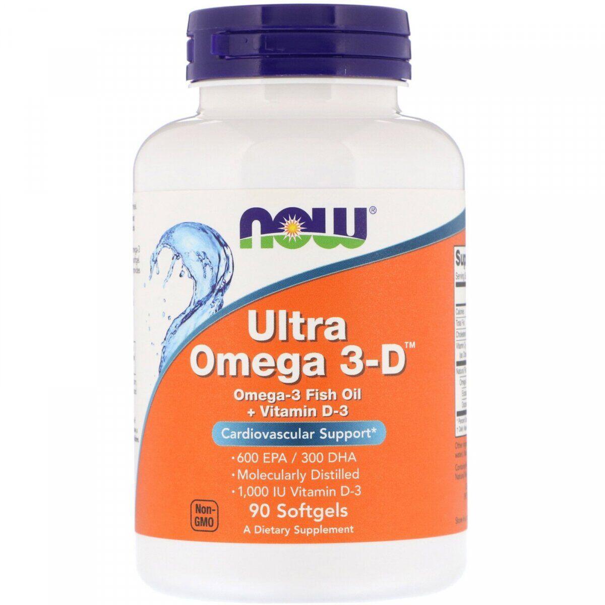 NOW Ultra Omega 3-D - наша самая мощная формула омега-3, с 600 мг EPA и 300 мг DHA на мягкую гель. Этот продукт приправлен лимонным маслом и содержит 1000 МЕ витамина D-3.