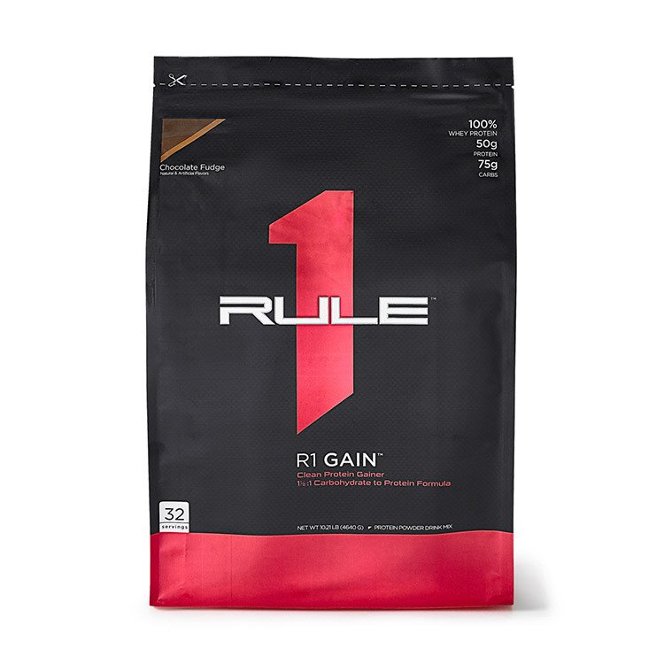 Гейнер для набора массы RuleOne R1 Gain существенным образом отличается от других американских и европейских конкурентов благодаря тому, что основная часть калорий, поступающих в организм, получается от белка. Одна порция содержит следующее уникальное соотношение белка к углеводам 50 грамм / 75 грамм.