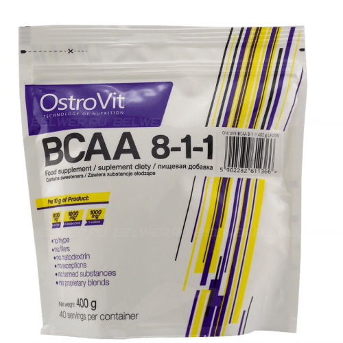 400 г BCAA 8-1-1 содержит 40 порции. Одна порция 10 г