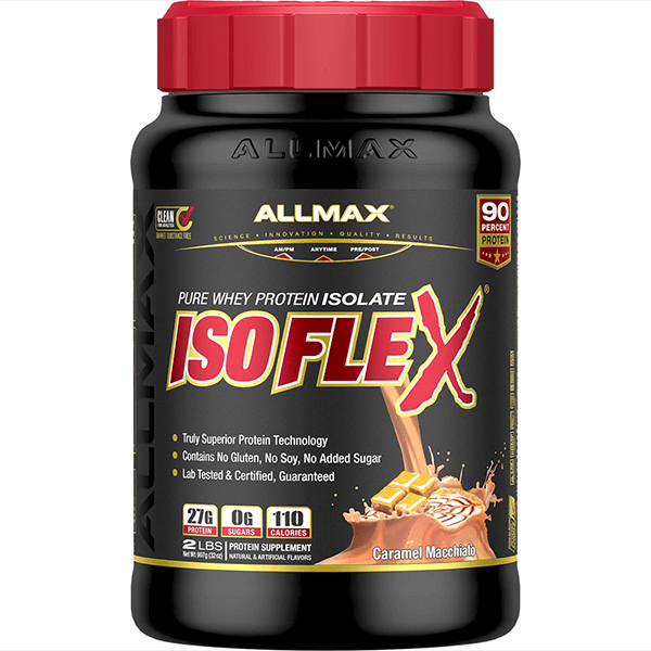 5. Сывороточный протеин изолят AllMax Nutrition Isoflex 907 грамм Карамель макиато